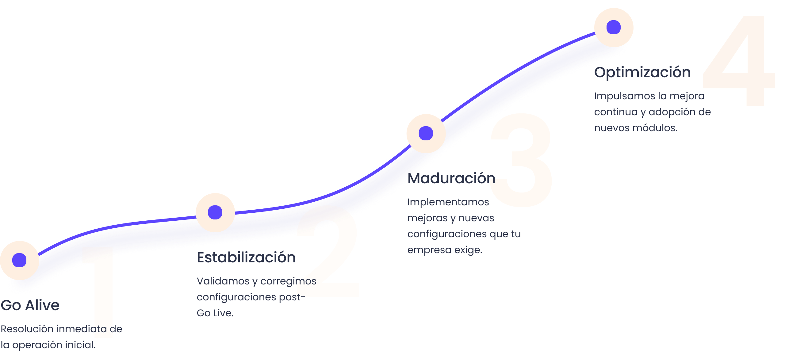 Brindamos un ecosistema de soporte integral diseñado para resolver interrupciones inmediatas y gestionar el crecimiento de tu sistema conforme a la curva de madurez.